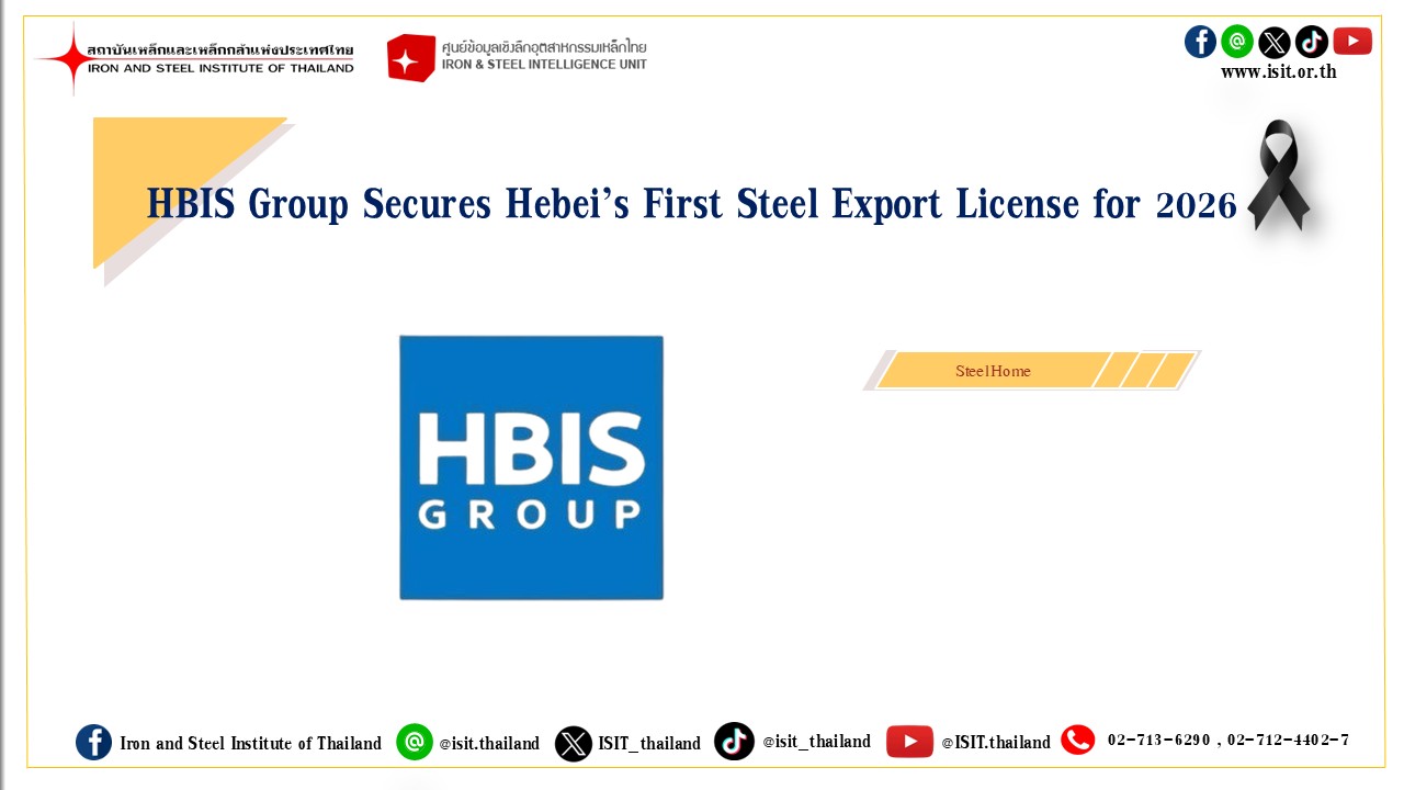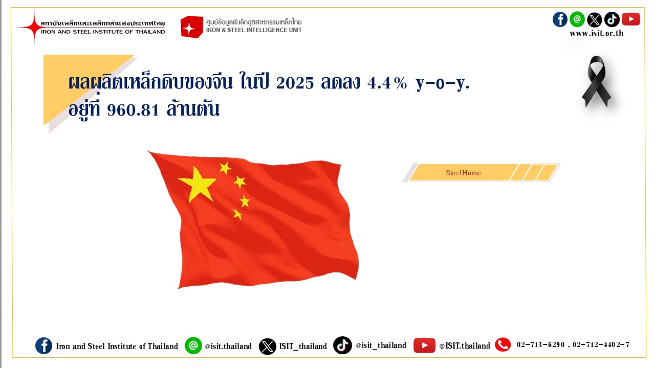 The information in the above report, publication and website has been obtained from sources believed to be reliable. However, Iron & Steel Institute of Thailand does not guarantee the accuracy, adequacy or completeness of the information. Any opinions or forecasts regarding future events may differ from actual events or results. In addition, Iron & Steel Institute of Thailand reserves the right to make changes and corrections to the information, including any opinions or forecasts, at any time without notice.