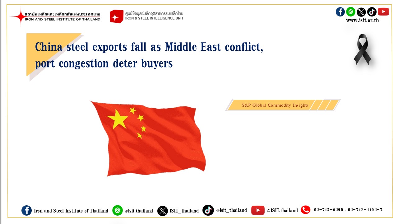 The information in the above report, publication and website has been obtained from sources believed to be reliable. However, Iron & Steel Institute of Thailand does not guarantee the accuracy, adequacy or completeness of the information. Any opinions or forecasts regarding future events may differ from actual events or results. In addition, Iron & Steel Institute of Thailand reserves the right to make changes and corrections to the information, including any opinions or forecasts, at any time without notice.