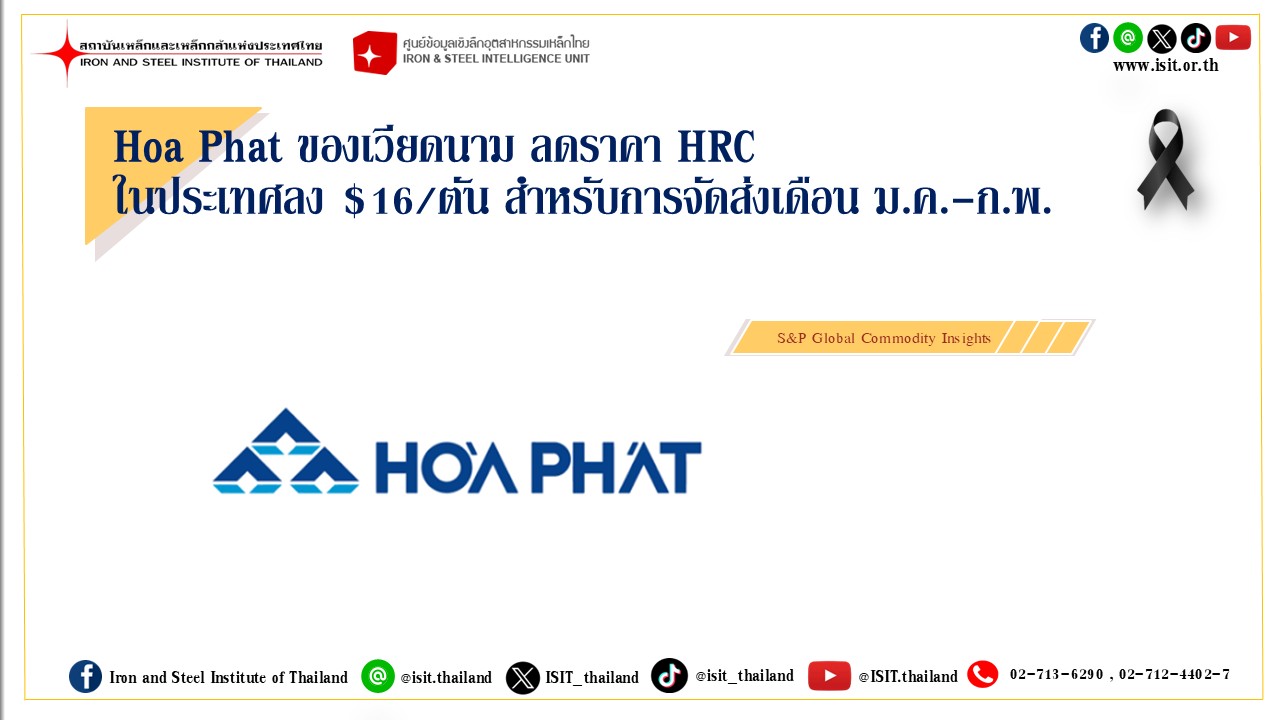 The information in the above report, publication and website has been obtained from sources believed to be reliable. However, Iron & Steel Institute of Thailand does not guarantee the accuracy, adequacy or completeness of the information. Any opinions or forecasts regarding future events may differ from actual events or results. In addition, Iron & Steel Institute of Thailand reserves the right to make changes and corrections to the information, including any opinions or forecasts, at any time without notice.