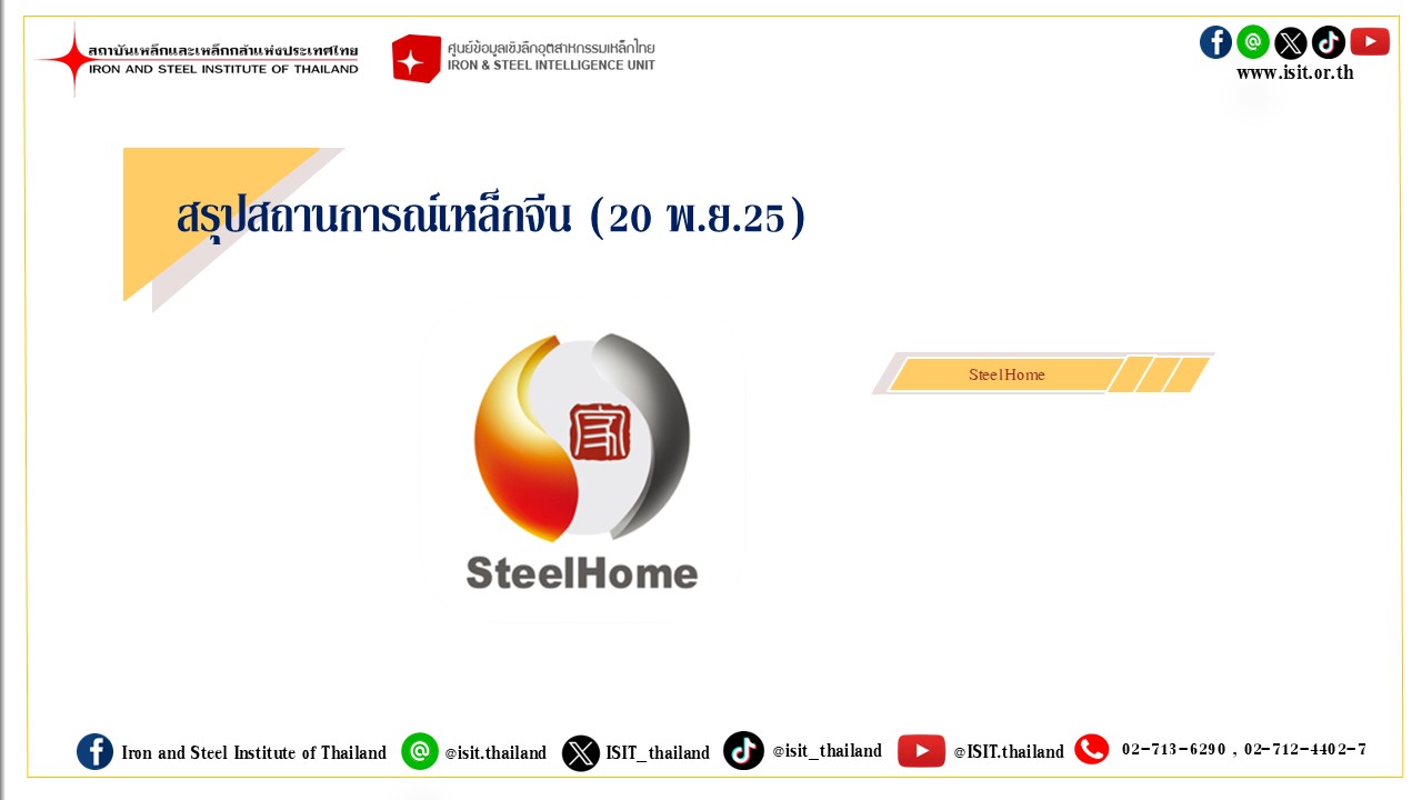Platts ประเมินเหล็กเส้นเกรด BS4449 เกรด 500 ขนาด 16-32 มม. มีราคาที่ $479/ตัน CFR ในเอเชียตะวันออกเฉียงใต้ การส่งออกเหล็กเส้นเกรด BS500B ขนาด 16-40 มม. ของจีน มีราคาที่ $467/ตัน FOB ซึ่งราคาทั้งสองทรงตัวจากวันก่อน