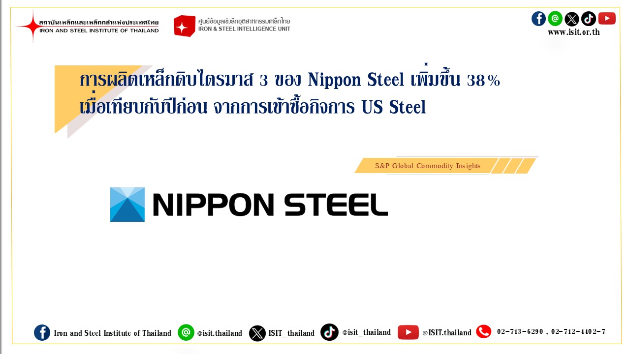 The information in the above report, publication and website has been obtained from sources believed to be reliable. However, Iron & Steel Institute of Thailand does not guarantee the accuracy, adequacy or completeness of the information. Any opinions or forecasts regarding future events may differ from actual events or results. In addition, Iron & Steel Institute of Thailand reserves the right to make changes and corrections to the information, including any opinions or forecasts, at any time without notice.