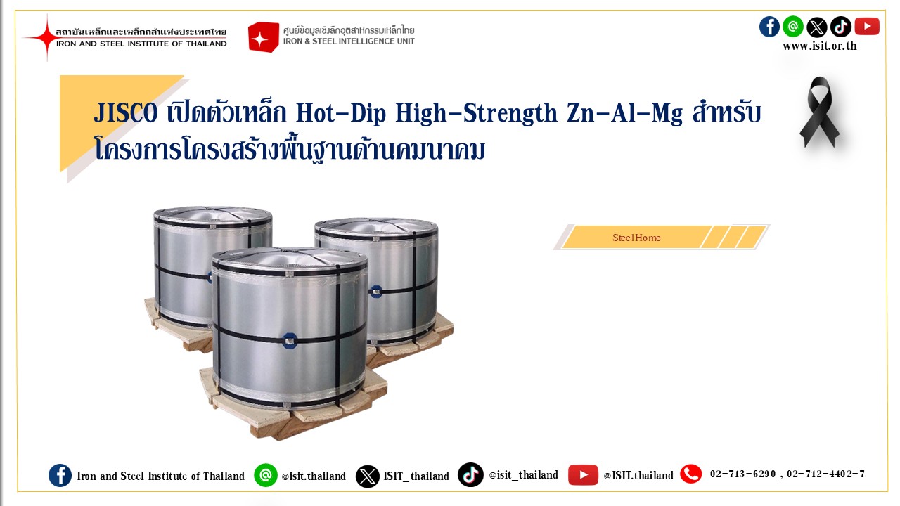 The information in the above report, publication and website has been obtained from sources believed to be reliable. However, Iron & Steel Institute of Thailand does not guarantee the accuracy, adequacy or completeness of the information. Any opinions or forecasts regarding future events may differ from actual events or results. In addition, Iron & Steel Institute of Thailand reserves the right to make changes and corrections to the information, including any opinions or forecasts, at any time without notice.